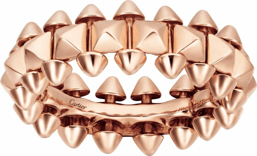 « Clash de Cartier » puise son inspiration dans les archives riches de la Maison, tout en intégrant des éléments modernes et contemporains. La collection rend hommage aux codes emblématiques de Cartier, tels que l’utilisation de l’or et des pierres précieuses, mais les réinterprète de manière innovante. Les créations arborent des chaînes robustes, des clous stylisés et des perles, créant un look à la fois punk et raffiné. Cette fusion de tradition et de modernité fait de chaque pièce un véritable statement, à la fois intemporel et résolument actuel.